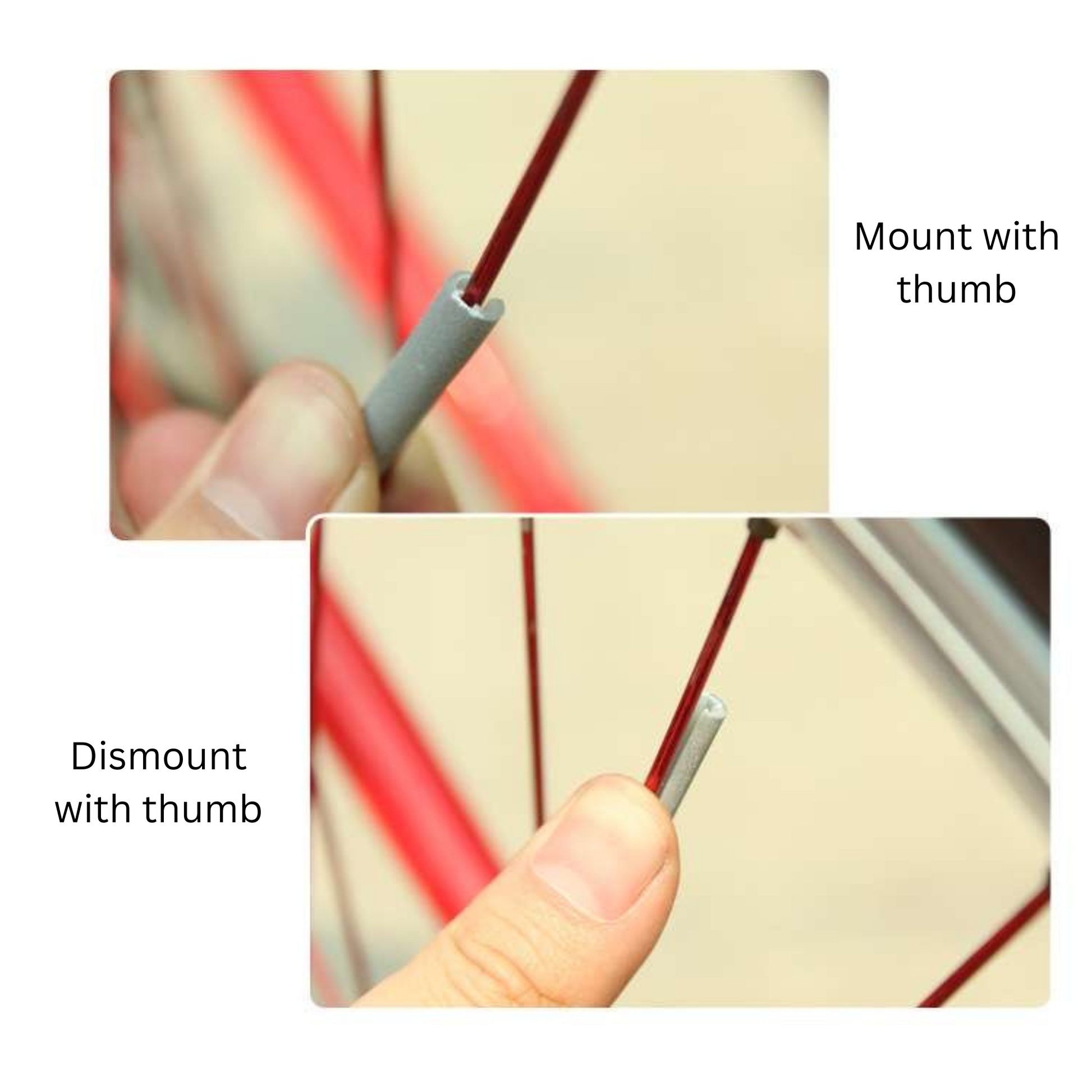 Cykel reflektor sätts på ekrarna. Du klickar på ekrarna genom skåran som finns på reflektorns ena långsida.